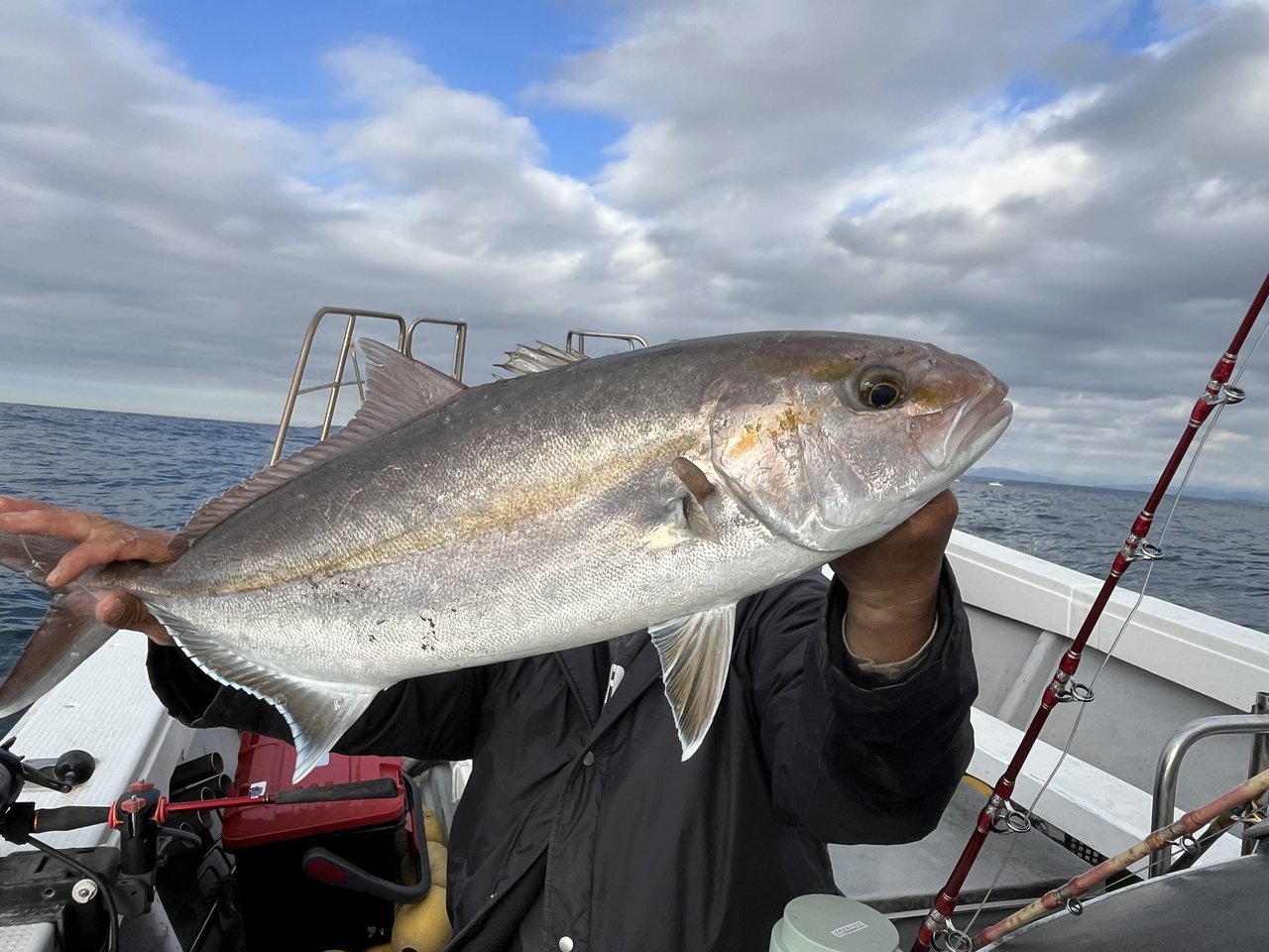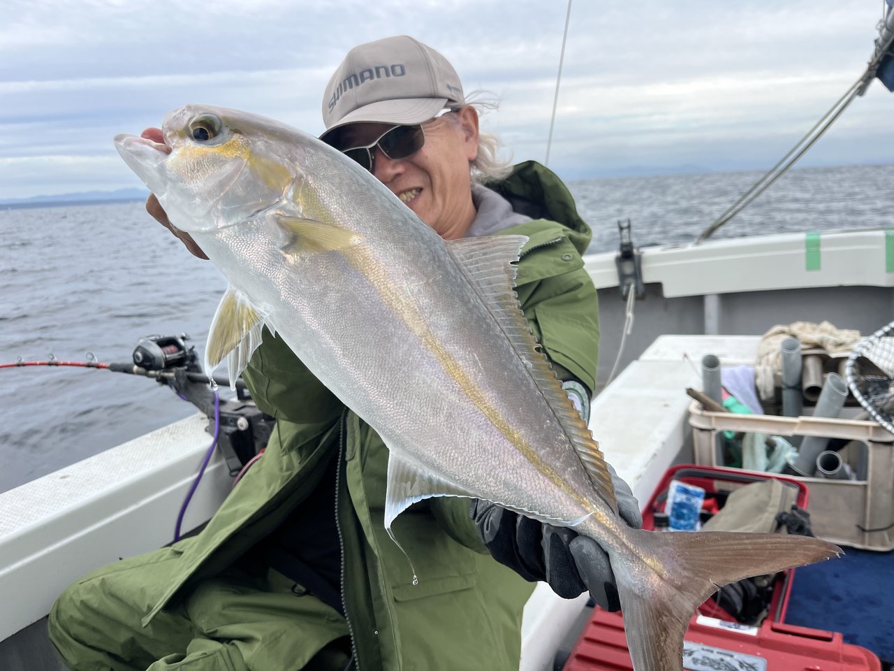 アジ泳がせ。アタリ多く楽しめました。他にイナダ10匹ぐらい・カサゴなど釣られました。ハリス切れ・針はずれ・餌抜かれでした。有難うございました。